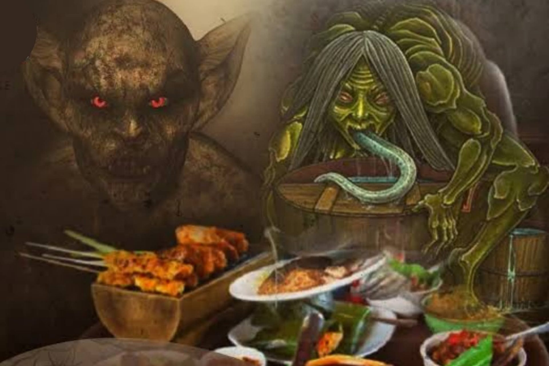 Sampai pada suatu hari, Dirman menceritakan pada Jafar mengapa dia kerap berpakaian kumal, “Aku harus berpakaian kumal karena itulah syarat dari pesugihanku. Siluman yang mendiami tubuhku berwujud makhluk tinggi besar, tubuhnya berbulu dan sangat bau. Lidahnya senantiasa menjulur meneteskan air liur yang berbau amis. Nasi goreng yang sering kutebarkan di sekitar penggorengan juga merupakan permintaan makhluk itu. Dia akan memakan remah-remah nasi itu.”