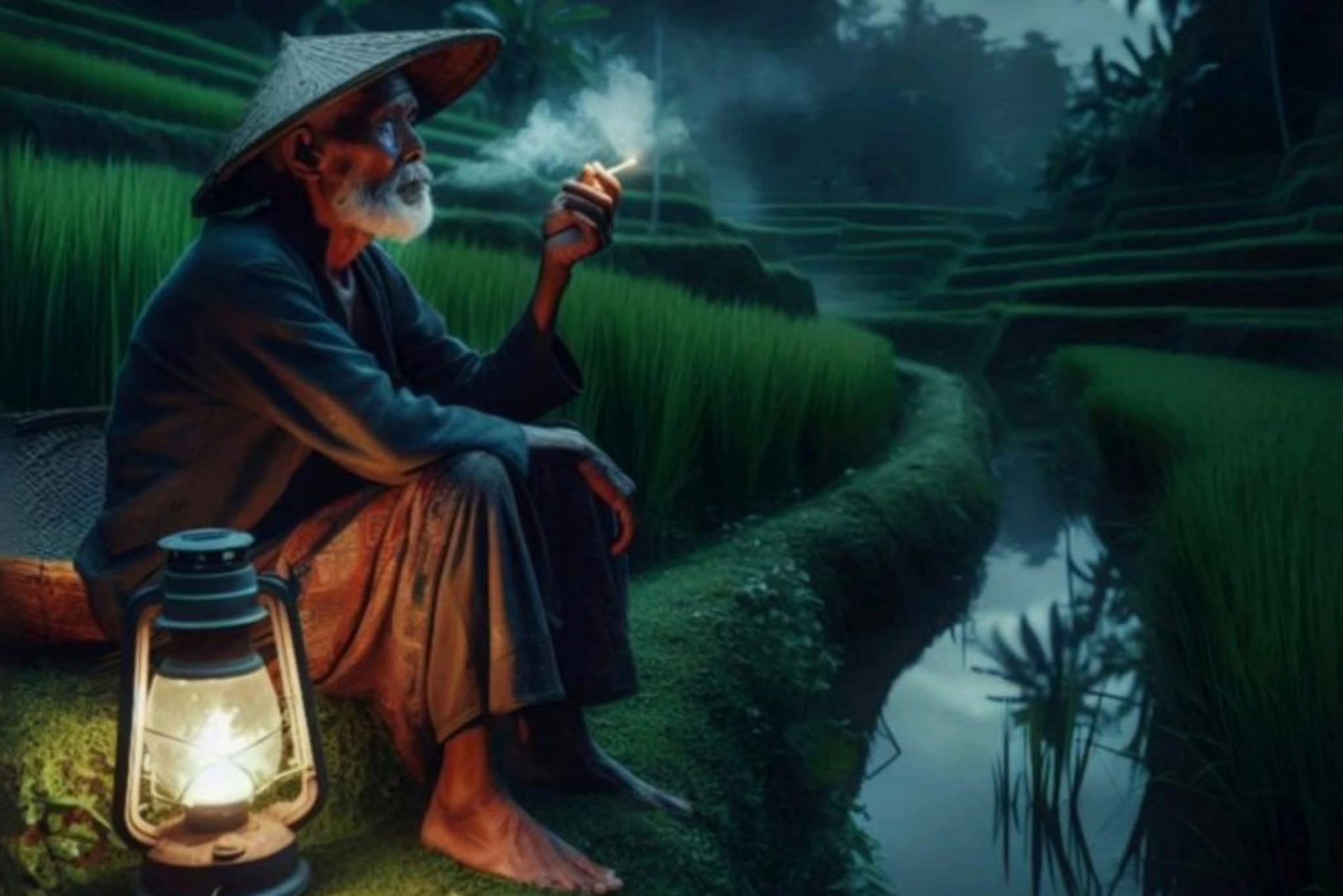 Posisi kakek itu berada di pinggir sungai, mau naik ke daratan. Tak ada rasa curiga dan takut di hati Sugiarto. Karena suasananya pun siang hari, apa lagi di sawah saat itu ramai orang sedang bercocok tanam padi.