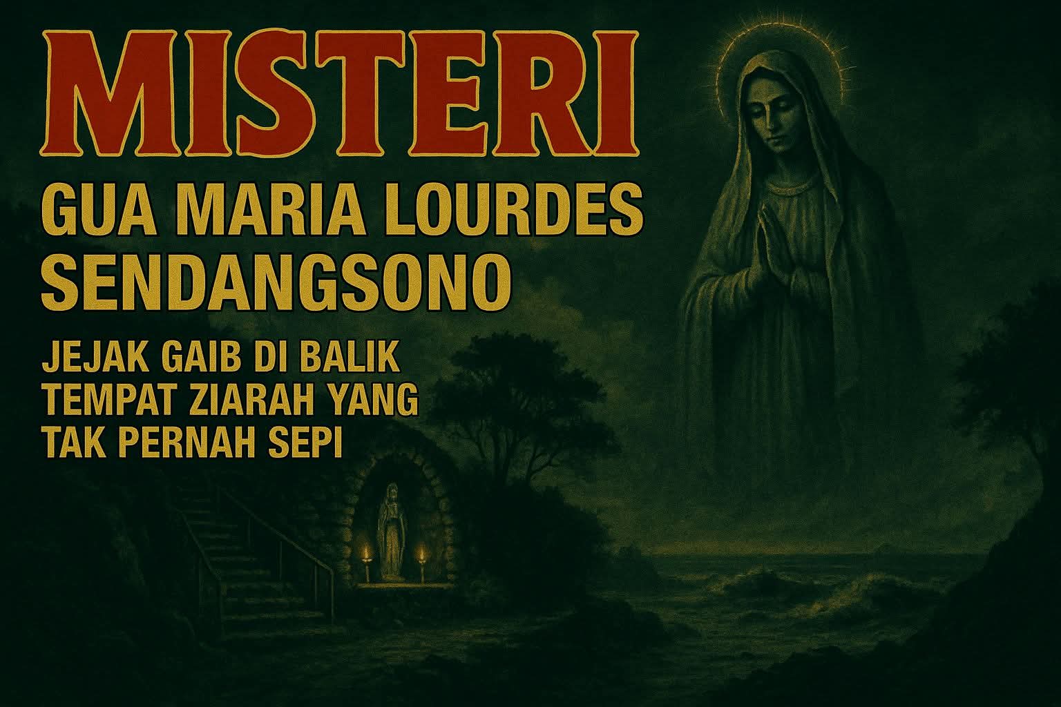 Gua Maria Lourdes Sendangsono terletak di Bukit Menoreh, kawasan Kalibawang, Kulonprogo, Yogyakarta. Meski dikenal sebagai tempat ziarah umat Katolik yang damai dan sejuk, kawasan ini juga menyimpan lapisan kisah mistis yang tak banyak diungkap di ruang terbuka.